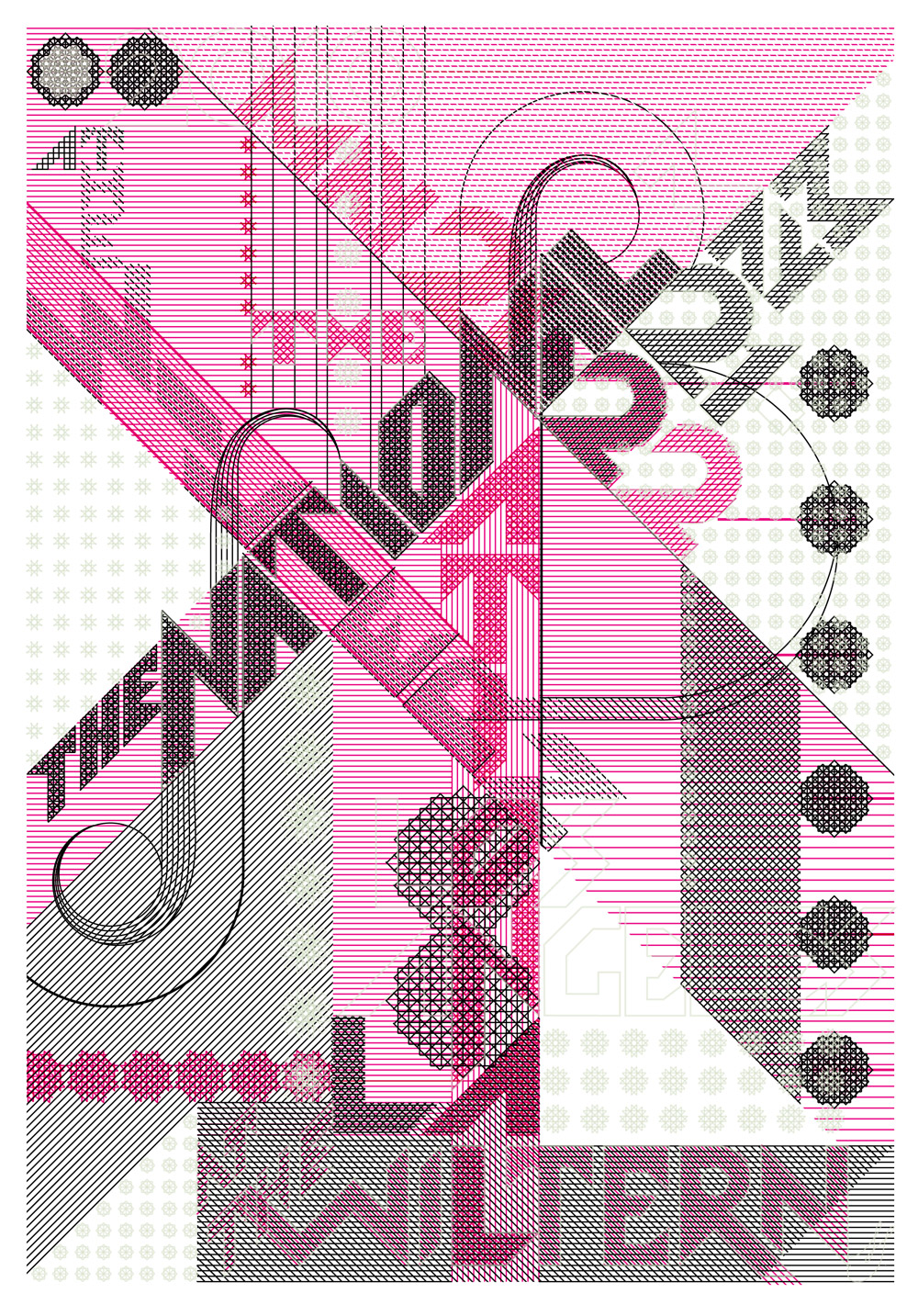 Marian Bantjes has been working with patterns for 30 years, in one form or another. This show is a collection of some of this work, in a variety of media. Originals are hung, but prints of many of them are also available.