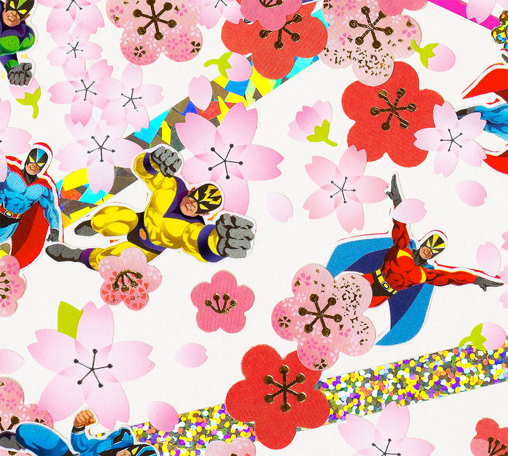Stickers and reflective tape on Arches 300gsm watercolour paper